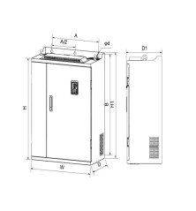 L' Inverter VFR500 132F3 trifase di 132KW di potenza è un convertitore di tensione e frequenza in grado di generare un sistema trifase controllato in tensione e frequenza per rendere possibile la variazione di velocità dei motori asincroni trifase o motori vettoriali.