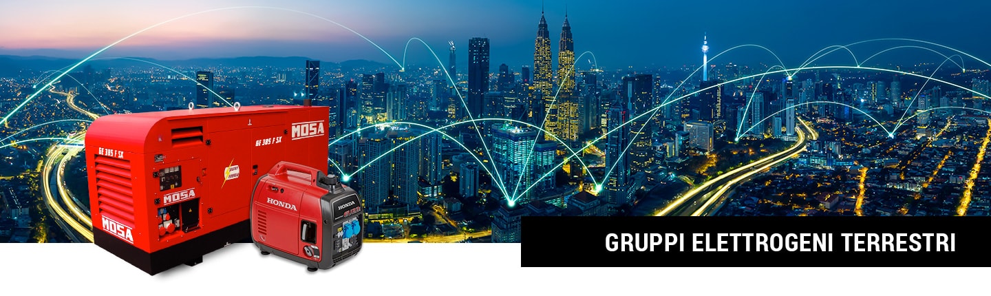 I nostri gruppi elettrogeni terrestri possono essere portatili o industriali con motori da 1500 giri/min a 3000 giri/minuto. In particolare si differenziano per tipo di fase (monofase, trifase, monofase/trifase), tipo di carburante con cui sono alimentati (benzina, diesel, metano, GPL), potenza, tipo di avviamento (manuale, elettrico, manuale/elettrico) e inoltre sono disponibili anche con talaio cofanato per renderli supersilenziati nel pieno rispetto delle emissioni acustiche. Grazie ai nuovi motori STAGE V, questi gruppi elettrogeni terrestri rispettano le nuove normative sulle emissioni sono disponibili non solo in vendita ma anche a noleggio.
