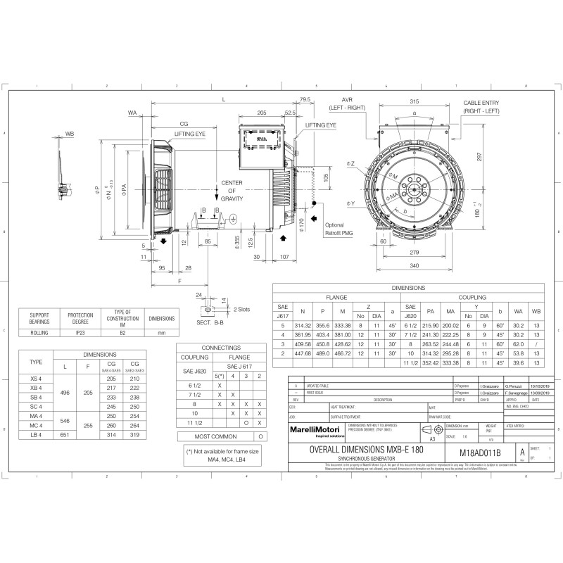 MARELLIMOTORI MXB-E 180MA4 è un Alternatore con una potenza di 45KVA 8KW, questa unità ha un funzionamento Brushless autoeccitante ed auto regolanti.