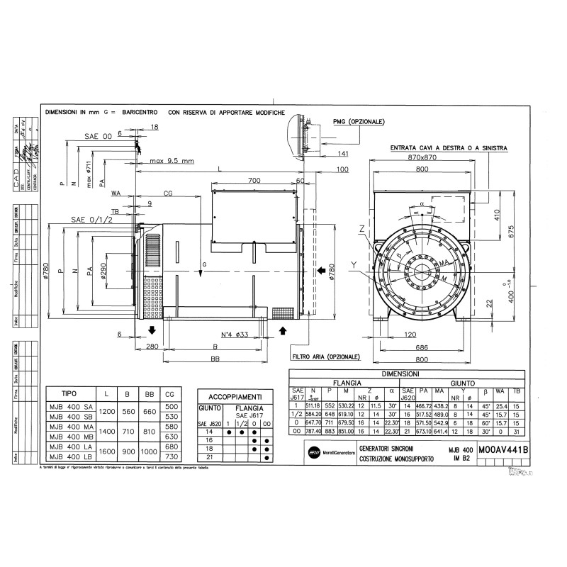 CARATTERISTICHE TECNICHE DEL ALTERNATORE 1150KVA TRIFASE MJB 400LA4