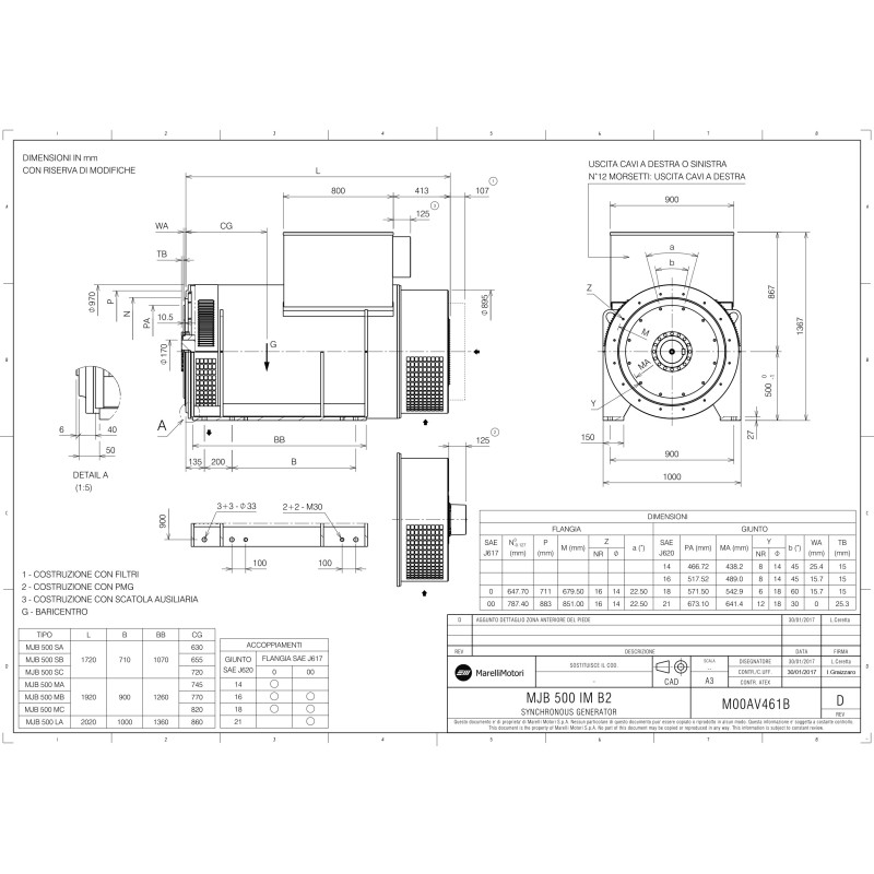 CARATTERISTICHE TECNICHE DEL ALTERNATORE 2200KVA TRIFASE MJB 500MB4