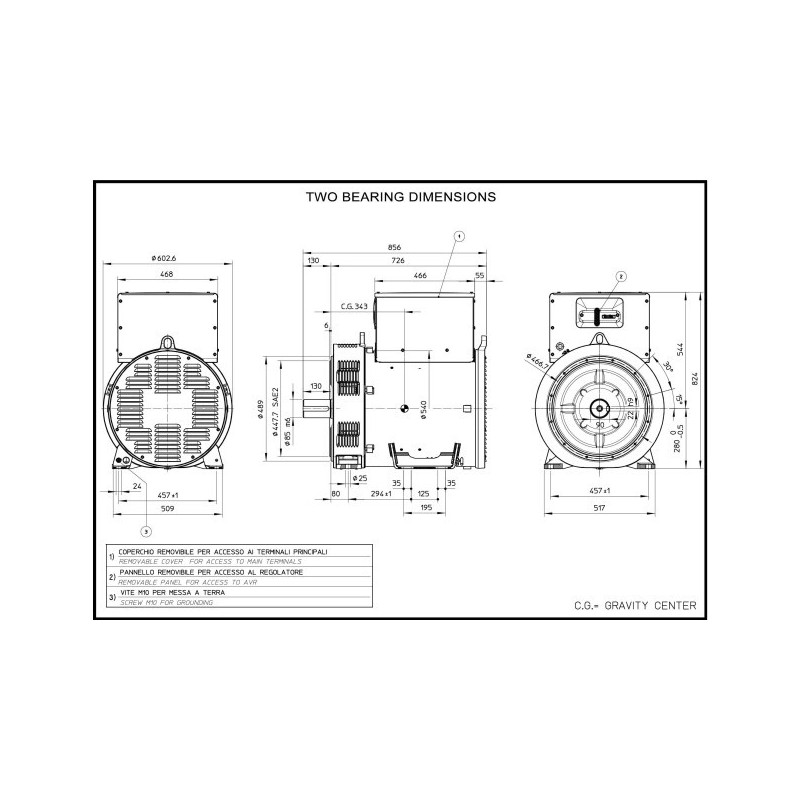 L' alternatore MECC ALTE ECO38 2S/4 C-TYPE trifase è capace di erogare una potenza continua di 200KVA completo di regolatore di tensione digitale AVR.