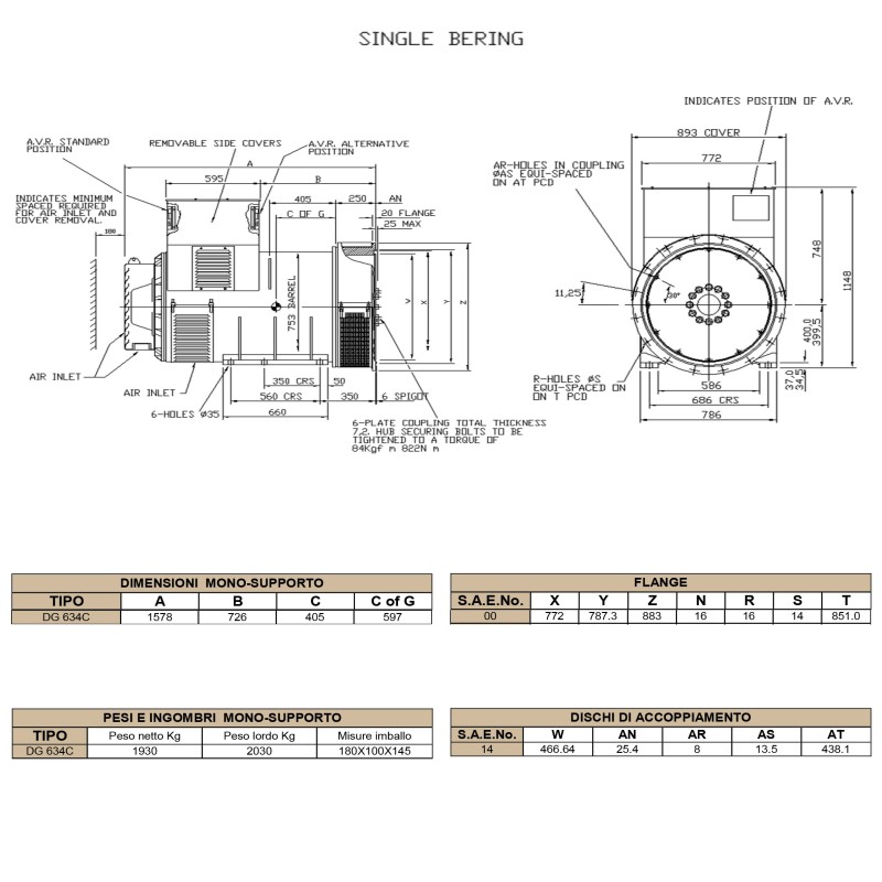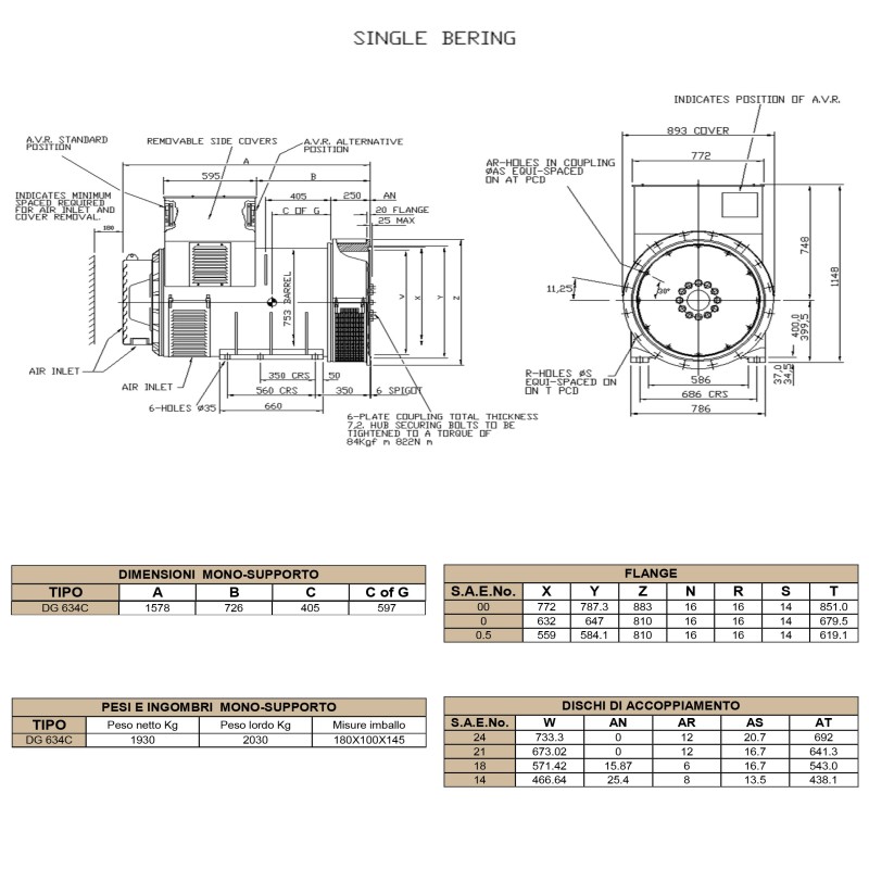 DINGOL DG634C è un alternatore trifase senza spazzole capace di erogare una potenza massima di 800KVA completo di regolatore di tensione AVR.
