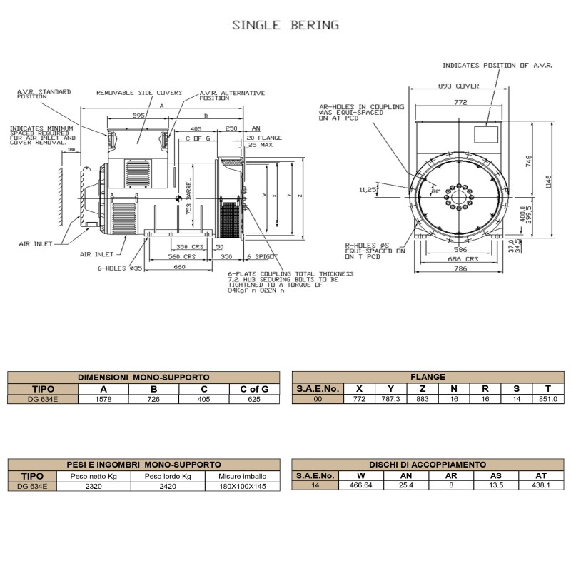DINGOL DG634F è un alternatore trifase senza spazzole capace di erogare una potenza massima di 1130KVA completo di regolatore di tensione AVR.