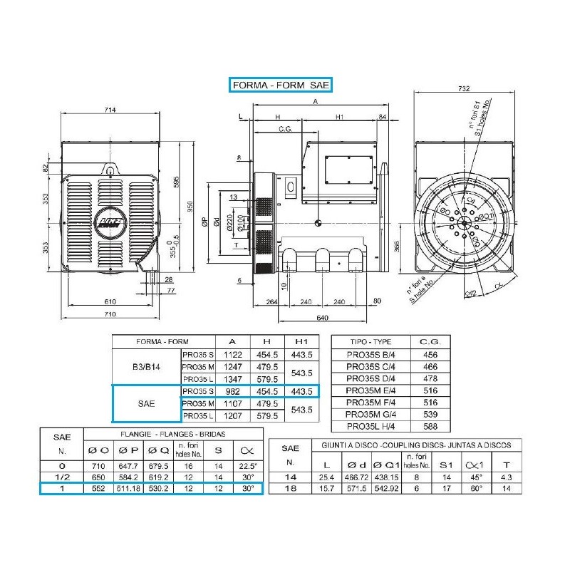 Gli alternatori della serie PRO sono trifase a 4 poli senza spazzole, dotati di regolatore elettronico (AVR) con riferimento di tensione monofase (PRO18-PRO22) e trifase (PRO28-PRO35-PRO40).