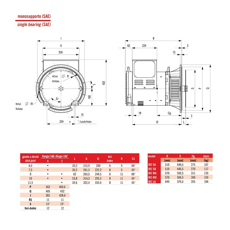 - Funzionamento monofase: Gli alternatori IB2 possono essere collegati per l'utilizzo in monofase