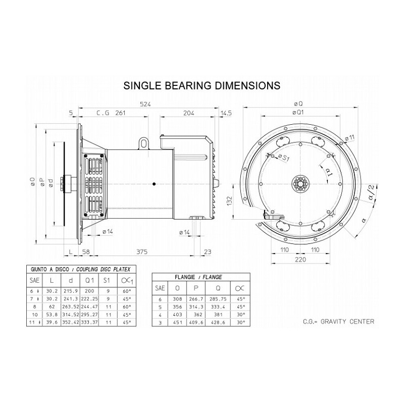 Tutti gli alternatori sono costituiti da uno statore fisso con cave inclinate e un induttore rotante. Inoltre, i modelli sopra i 15 KVA sono dotati di serie di una gabbia di smorzamento. Tutti gli avvolgimenti alternatori hanno un passo a 2/3 al fine di ridurre il contenuto armonico.
