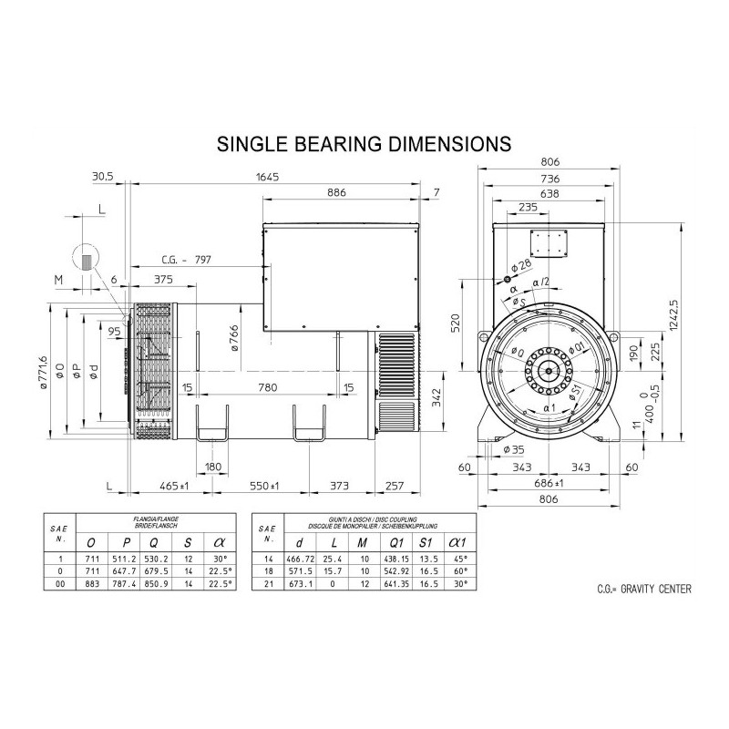 Tutti gli alternatori sono costituiti da uno statore fisso con cave inclinate e un induttore rotante. Inoltre, i modelli sopra i 15 KVA sono dotati di serie di una gabbia di smorzamento. Tutti gli avvolgimenti alternatori hanno un passo a 2/3 al fine di ridurre il contenuto armonico.