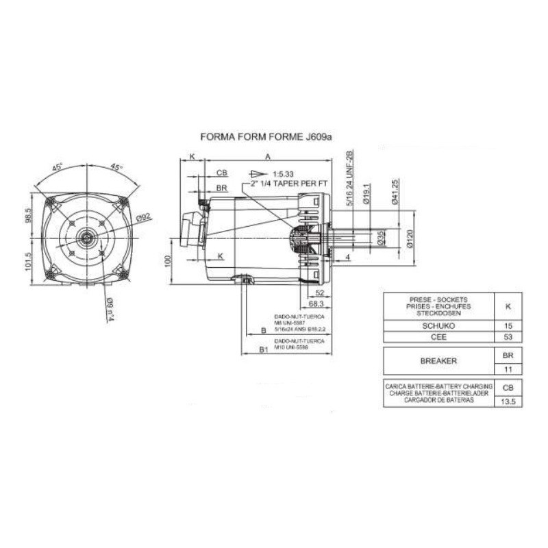 Potenza nominale a 50Hz (kVA): 5 Fattore di potenza nominale: 1 Temperatura nominale (°C)/ 40 Sistema di controllo| autoeccitato Esecuzione| senza spazzole Tipo di regolazione| condensatore Classe di isolamento| H Protezione| IP21 Velocità massima di marcia in eccesso (giri/minuto)| 4500 Sovraccarico del 110% della potenza nominale per un'ora in un ciclo di 6 ore Fabbisogno di flusso d'aria (m3/min): 3,7 a 50Hz Norma di soppressione R.F.F.I. EN55011