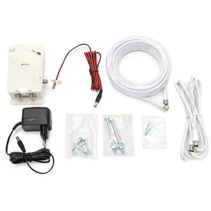 MOSCATELLI MOOVE AN100 è un'antenna digitale omnidirezionale con guadagno di segnale con amplificatore di 30 dB capace di ricevere segnali FM/VHF/UHF.