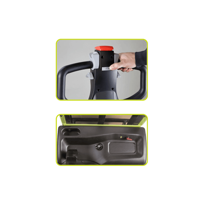 Il PRAMAC LIFTER GX12-35EVO GEL24V-105Ah Carrello Elevatore Elettrico è dotato di un timone ergonomico in tecnopolimero, con comandi proporzionali per il sollevamento, acceleratore integrato, clacson e pulsante di sicurezza. La funzione “tartaruga” consente di lavorare in spazi stretti mantenendo il controllo totale del mezzo.