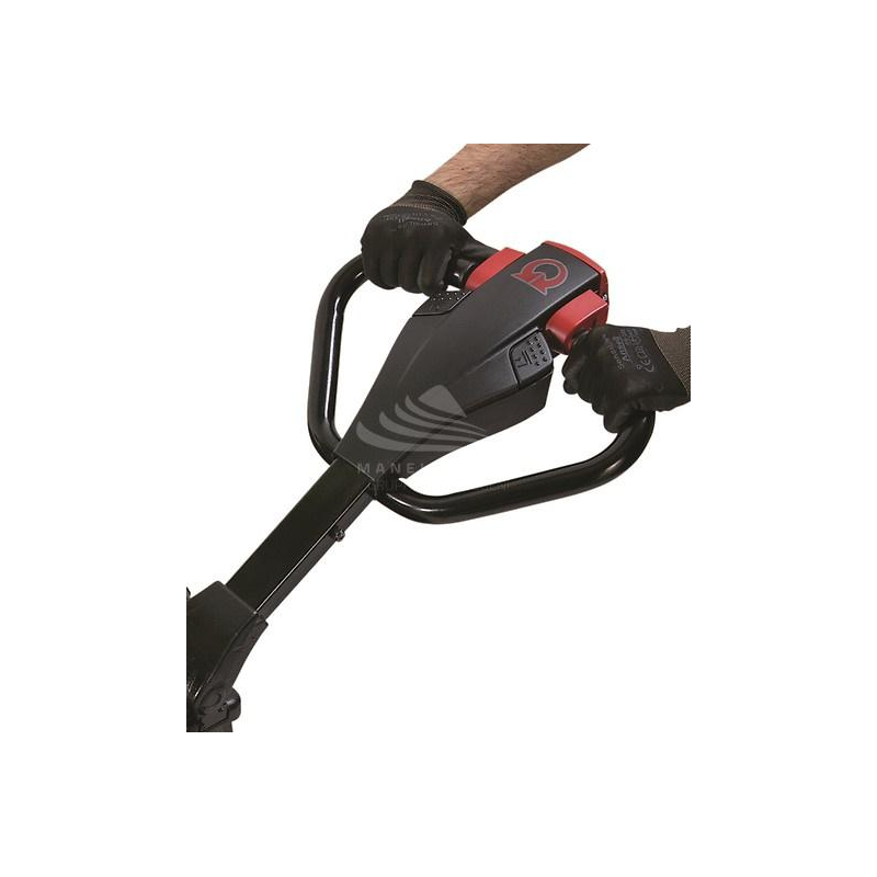 Timone ergonomico integrato, che include acceleratore e controllo forche, pulsante di sicurezza, clacson e pulsante tartaruga.