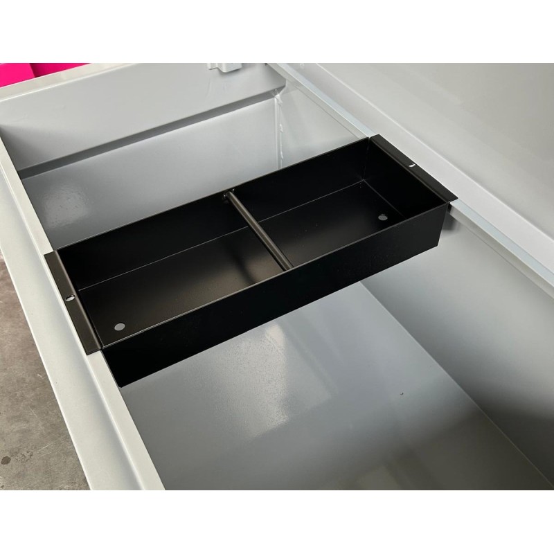 Il Cassone Antiscasso 518,5 L è la soluzione ideale per proteggere i tuoi oggetti di valore da furti e danneggiamenti. Realizzato con una solida lamiera di acciaio da 2 mm e rivestito con una resistente verniciatura a polvere, questo cassone garantisce una durata nel tempo e una protezione ottimale.