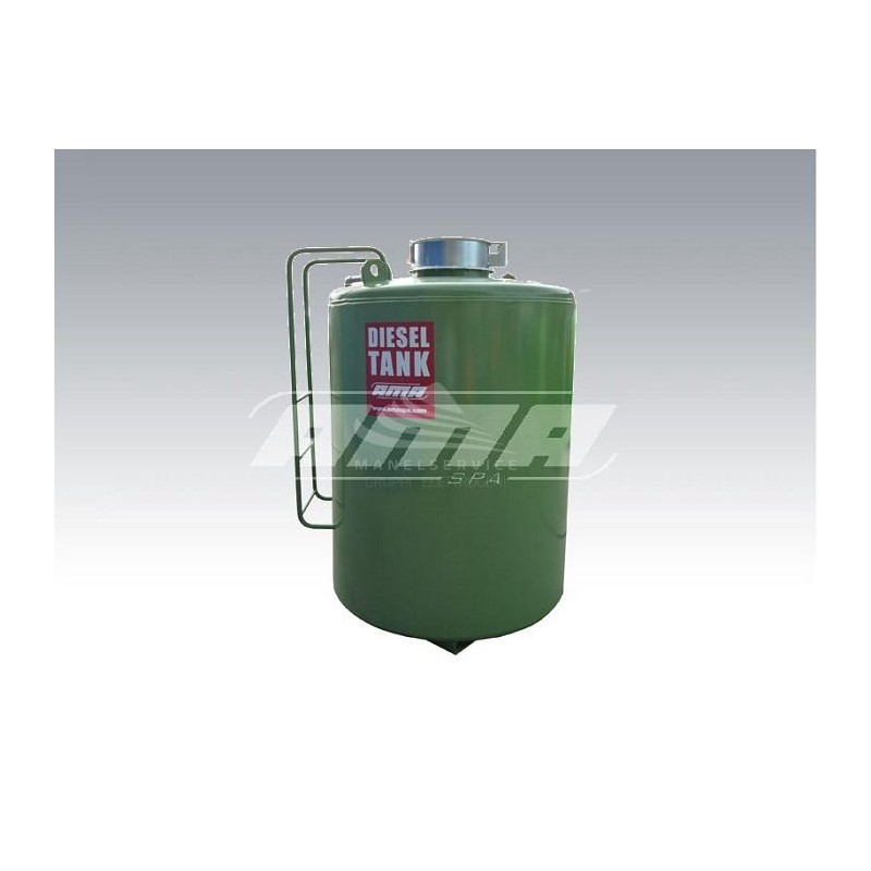 Serbatoio a doppia parete, ad asse verticale, realizzato in acciaio al carbonio EN 10025. Il serbatoio esterno di protezione ha capacità di contenimento pari al 100% del serbatoio interno. La struttura è sorretta da gonna di supporto e da barre inferiori che permettono la movimentazione a vuoto tramite muletto.