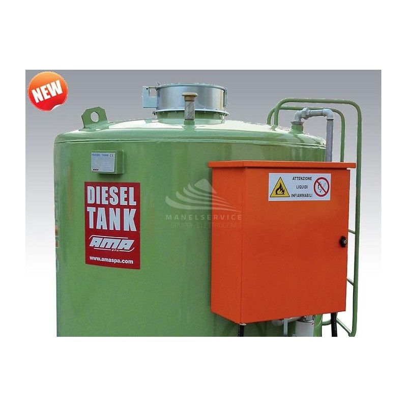 Impianto Diesel Tank, ad asse verticale a doppia parete senza cassetta e gruppo erogatore, corredato di raccorderia su passo d'uomo, predisposto per allacciamento a Gruppi Elettrogeni o Gruppi Esterni.