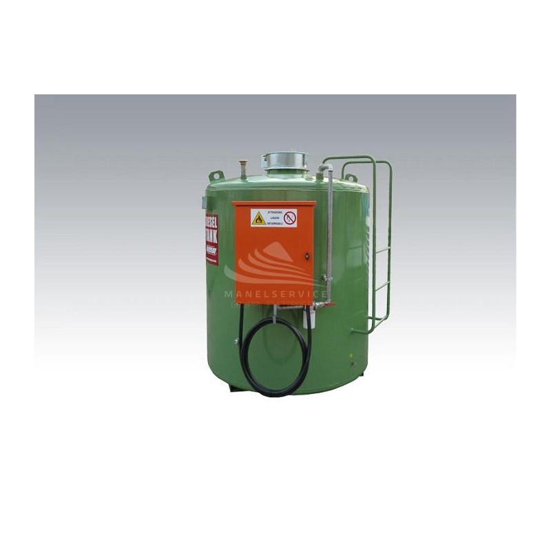 Serbatoio a doppia parete, ad asse verticale, realizzato in acciaio al carbonio EN 10025. Il serbatoio esterno di protezione ha capacità di contenimento pari al 100% del serbatoio interno. La struttura è sorretta da gonna di supporto e da barre inferiori che permettono la movimentazione a vuoto tramite muletto.