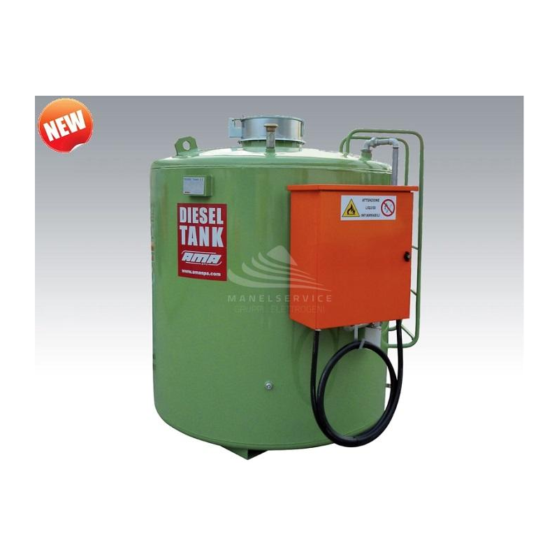 Serbatoio a doppia parete, ad asse verticale, realizzato in acciaio al carbonio EN 10025. Il serbatoio esterno di protezione ha capacità di contenimento pari al 100% del serbatoio interno. La struttura è sorretta da gonna di supporto e da barre inferiori che permettono la movimentazione a vuoto tramite muletto.