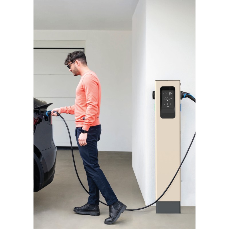 Urban S Trifase 64 A, 2X22 kW, socket tipo 2, corpo completo inox AISI304, display monocromatico, connettività Bluetooth, WiFi, Ethernet e compatibilità con modem 4G USB, doppio lettore RFID, protezioni magnetotermiche differenziali e di sovratensione permanente e transitoria integrate, bobina di sgancio integrata, misuratore MID