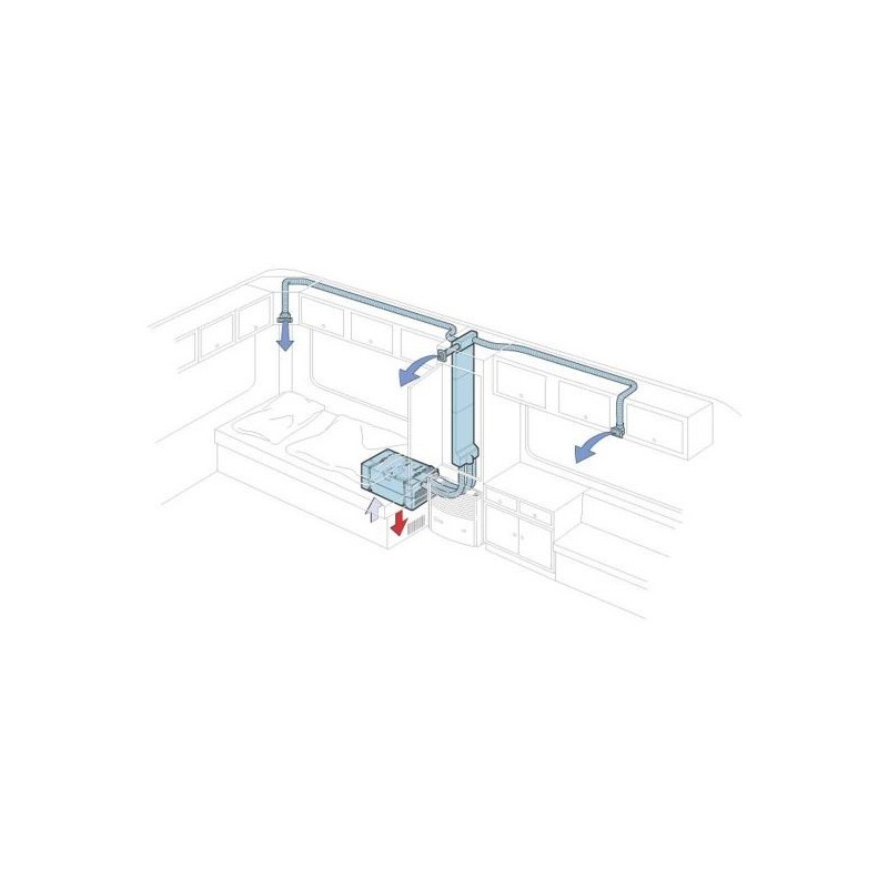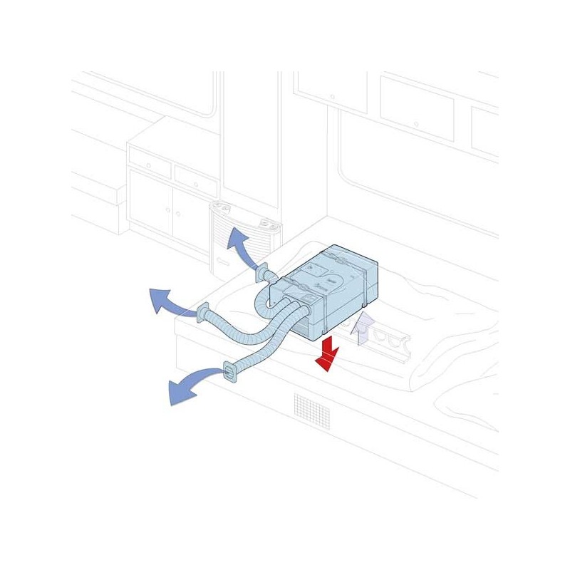 Truma Saphir compact IR 1800W compact si installa al centro in un gavone, ad esempio sotto la cassapanca, in modo da distribuire l’aria fredda in modo uniforme in tutto il camper o il caravan.
