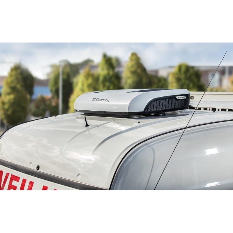 Condizionatore DOMETIC COOLAIR RTX1000 compatto climatizzatore a tetto per camion ad uso stazionario, alimentato a batteria per un massimo di 12 ore. Elevata efficienza: solo 8 A di potenza assorbita in modalità Eco. Il condizionatore DOMETIC COOLAIR RTX1000 può essere montato nell'oblò esistente con un'inclinazione massima di 8°.