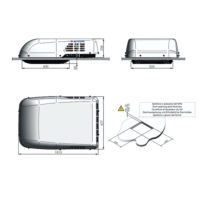 Autoclima è progettato per essere facilmente installato sulla maggior parte dei veicoli ricreazionali. Ha un design a basso profilo che lo rende discreto e poco ingombrante una volta installato. La sua capacità di raffreddamento è adatta a un ambiente di medie dimensioni e, grazie alla funzione di deumidificazione, è possibile eliminare l'umidità dell'aria.