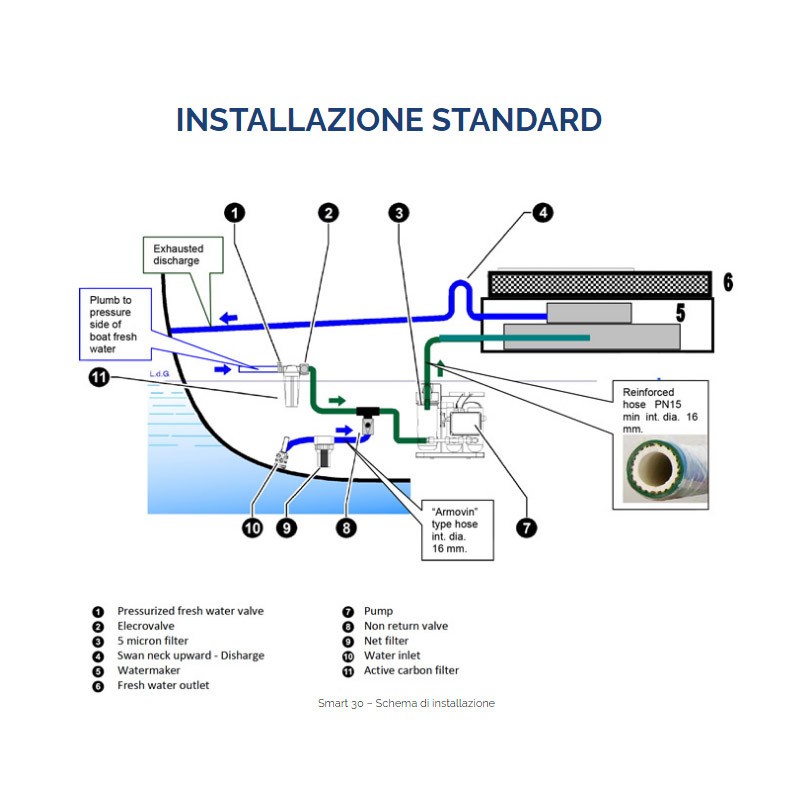 Schenker SMART 30 TOUCH è un dissalatore nautico silenzioso, piccolo, leggero, efficiente e conveniente. Può essere installato in tutte le posizioni, in orizzontale e in verticale.