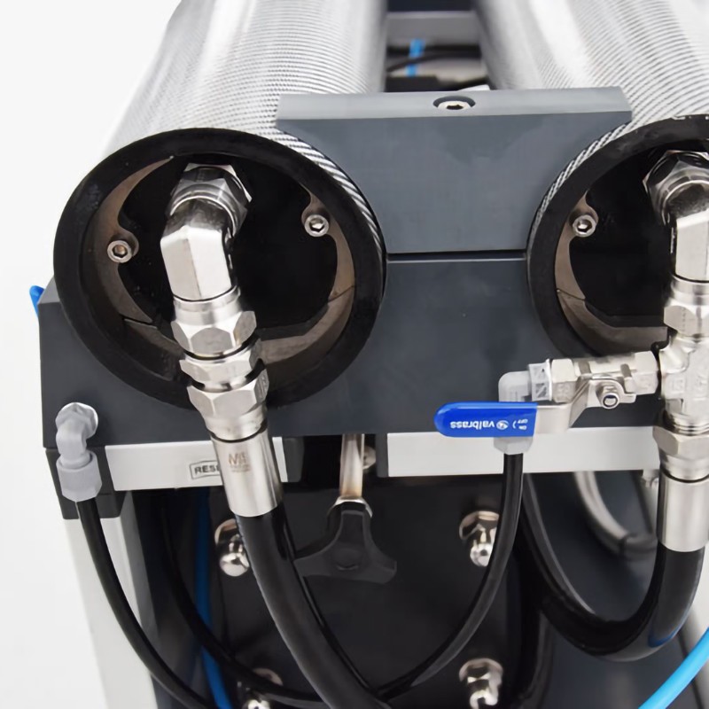 Gli impianti Schenker, in alternativa alle pompe ad alta pressione degli impianti tradizionali, utilizzano il nuovo dispositivo brevettato ERS, che amplifica la pressione fornita da pompe a bassa pressione, consentendo un rendimento energetico elevatissimo. Il consumo elettrico tipico di un SCHENKER MODULAR 100 TOUCH è di solo 4 Watth/litro.