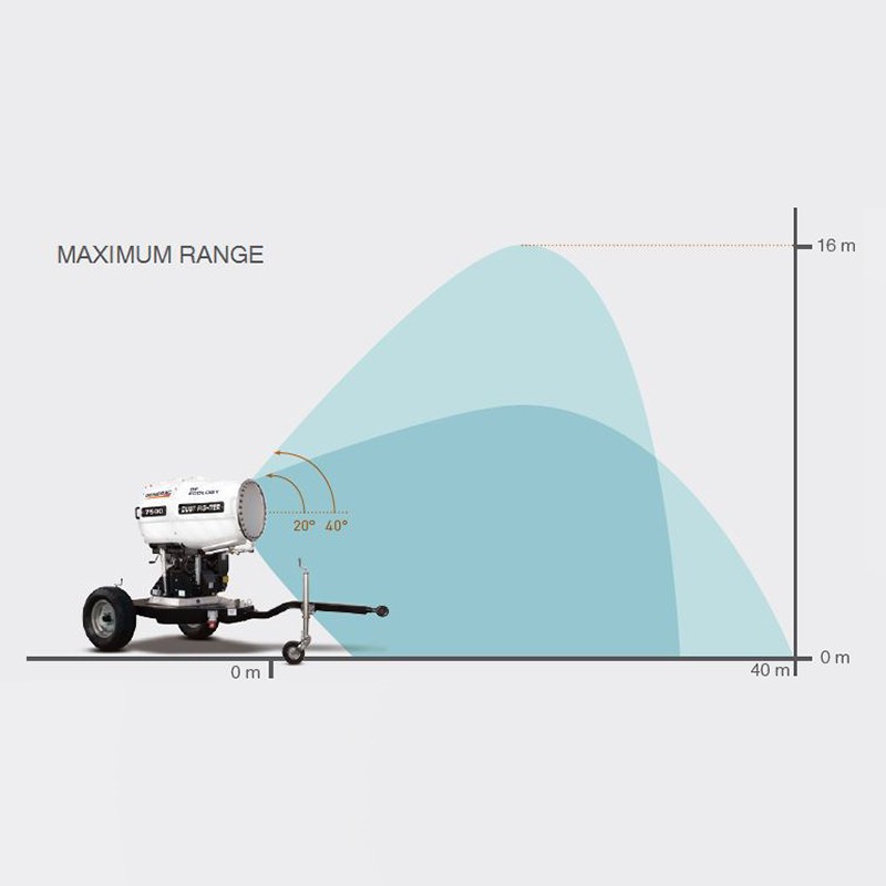 Grazie al sistema di nebulizzazione delle particelle di acqua fino a 180 micron il Dust Fighter GENERAC le particelle di polvere si legano e finiscono a terra più facilmente. In oltre il metodo di nebulizzazione permette di coprire interamente la nube polverosa facendovi risparmiare ingenti quantità d'acqua.