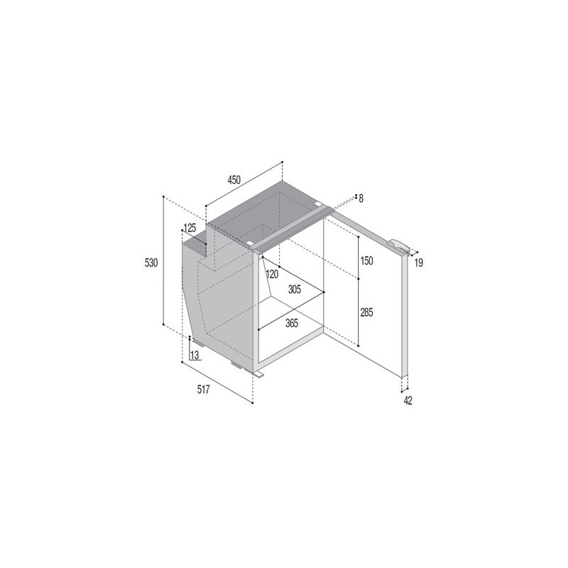VITRIFRIGO C62I è un frigorifero con una capacità totale di 62 lt completo di vano freezer e sistema di chiusura Airlock in dotazione standard.