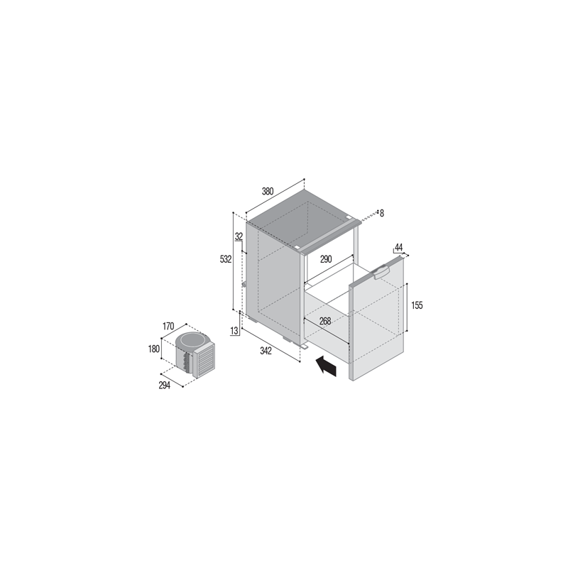 Profondità totale: 342 mm.