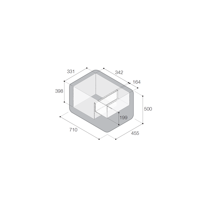 500 mm in altezza e 710 mm in profondità, offrendo un equilibrio ottimale tra capacità di stoccaggio e compattezza.