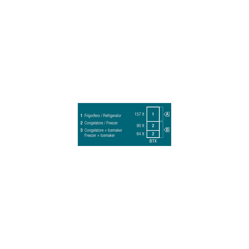 Alimentazione compartimento inferiore (B): 12/24Vdc (disponibile anche con centralina bivalente 12/24Vdc - 100-240Vac 50/60Hz)