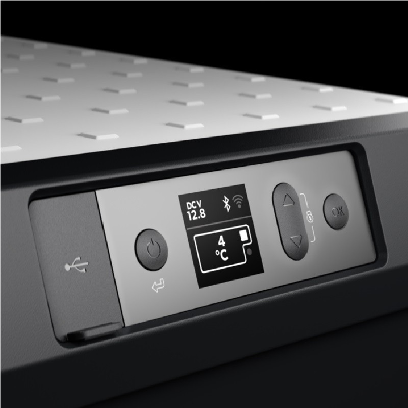 La gamma DOMETIC CFX3-55IM è dotata di un display a colori ad alta definizione facile da leggere per monitorare lo stato di funzionamento del frigorifero. Il display è dotato di diverse misure di protezione per garantirvi la massima resistenza ed affidabilità, tra cui una copertura antigraffio e antipolvere conforme allo standard IP65.