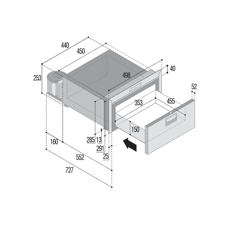 Il VITRIFRIGO DW35OCX2RFX è un frigorifero a cassetto singolo in acciaio inox, progettato per l'utilizzo in camper e caravan.