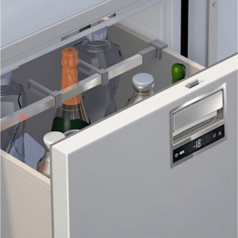 Il nuovo cassetto del VITRIFRIGO DRW70A è dotato di guide a scorrimento e divisori interni di nuova generazione, che migliorano l'organizzazione e l'accesso ai cibi conservati.