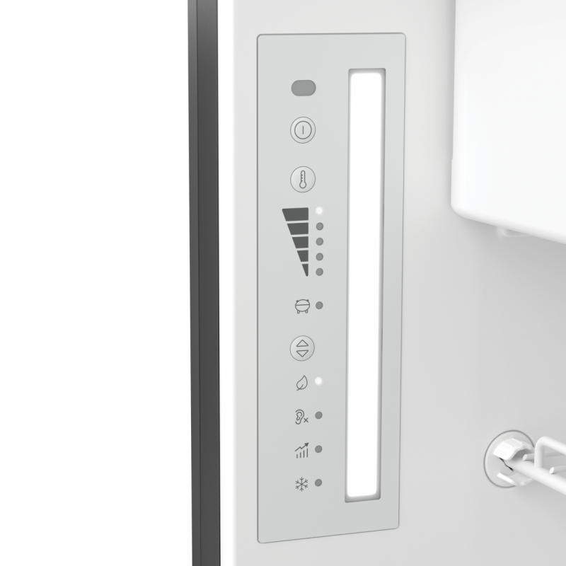 Funzionalità avanzate: Il pannello di controllo di facile utilizzo permette di regolare la temperatura e scegliere tra diverse modalità di funzionamento (Eco, Boost, Silent). La modalità Winter garantisce prestazioni ottimali anche in climi freddi.