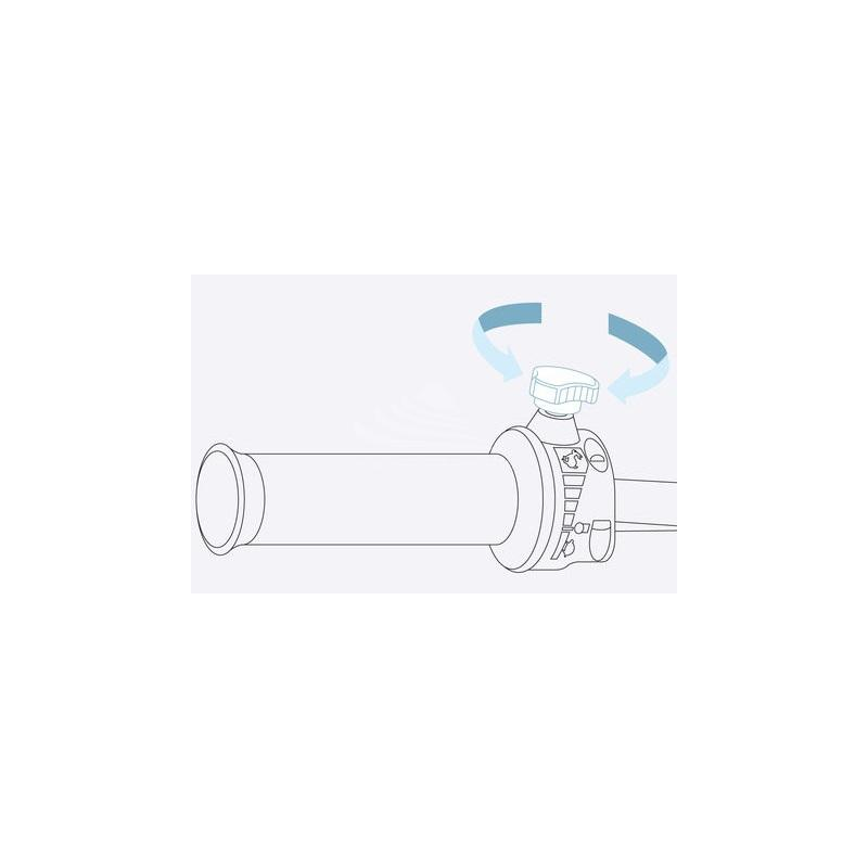 La manopola dà una sensazione di notevole dolcezza ed è dotata di una vite-frizione che ne consente il bloccaggio a vari regimi e permette così di rilassare la mano.