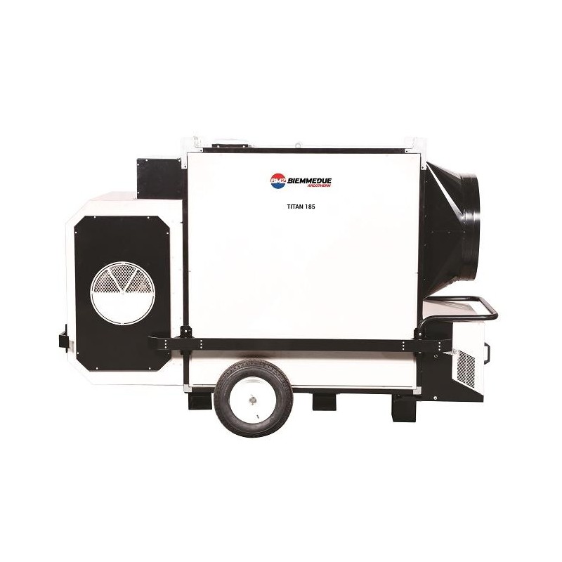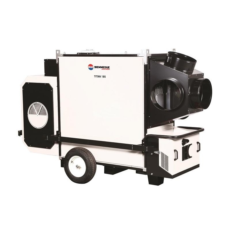 BM2 TITAN 145T è un generatore di aria calda a combustione indiretta, di grande dimensione per ambienti più voluminosi, può montare indifferentemente un bruciatore esterno a gasolio, GPL o metano.