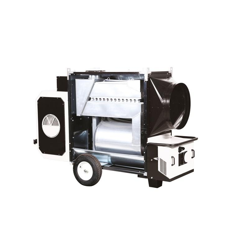 - ad alta prevalenza e prestazioni che garantisce un elevata portata e pressione statica (500 Pa) per la diffusione omogenea ed a lunga distanza dell'aria calda mediante canalizzazioni o guaine;