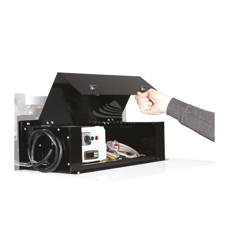 - posizionato nella parte anteriore della macchina dentro il cassetto copertura bruciatore: per evitare che sia a contatto con polvere, acqua, neve per una più facile manutenzione; per un più agevole controllo ed intervento dell'operatore