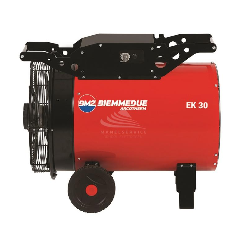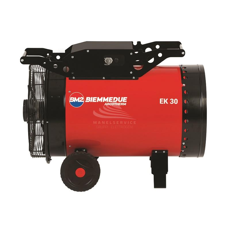 BM2 EK30C è un generatore di aria calda elettrico professionale/industriale, in sostituzione del bruciatore ci sono delle resistenze elettriche le quali garantiscono il riscaldamento dell'aria convogliata mediante il ventilatore.