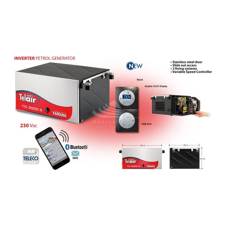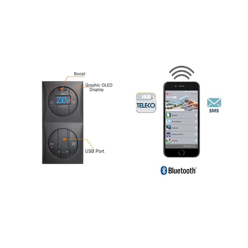 Permette di selezionare il funzionamento del generatore veicolare TELAIR TIG 3000B tra manuale e automatico (in caso di utilizzo anche come carica batteria) ed inoltre è dotato di un tasto BOOST che può essere utilizzato quando serve un aumento di potenza temporaneo per un carico elettrico molto elevato. È inoltre dotato di un'interfaccia speciale che consentirà in futuro, di utilizzare la nuova App Teleco-Hub per accendere, spegnere e controllare a distanza il generatore veicolare 3000B tramite uno smartphone iOS o Android.
