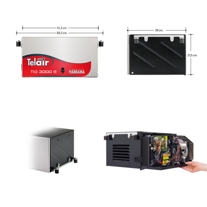 Una modernissima gestione elettronica a giri variabili del regime di rotazione ha permesso al generatore veicolare TELAIR TIG 3000B di ottenere un livello di rumorosità estremamente bassa abbinata ad un consumo di gasolio molto ridotto. Il regolatore di tensione a tecnologia inverter consente al generatore veicolare TELAIR TIG 3000B di generare una tensione molto stabile con un'onda sinusoidale pura ed inoltre rende possibile l'accoppiamento di 2 generatori veicolari TELAIR TIG 3000B in parallelo raddoppiando quindi la potenza fornita.