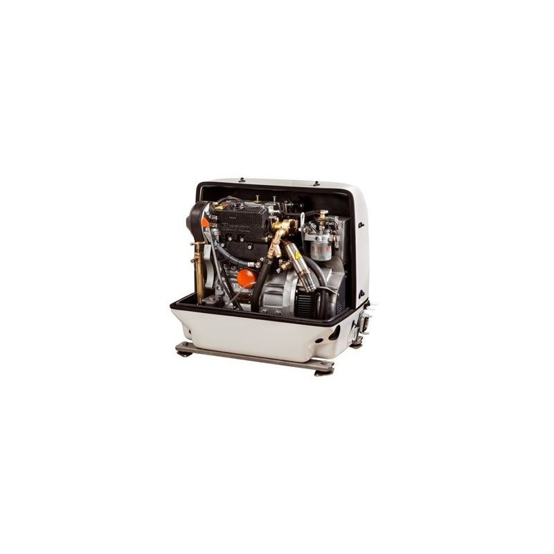 Gruppo elettrogeno marino VTE PAGURO12000 PARALLEL monofase da 12 KVA, con motore Lombardini LDW 1003 alimentato a diesel con giri fissi a 3000 giri/minuto e raffreddato ad acqua dolce con scambiatore di calore.