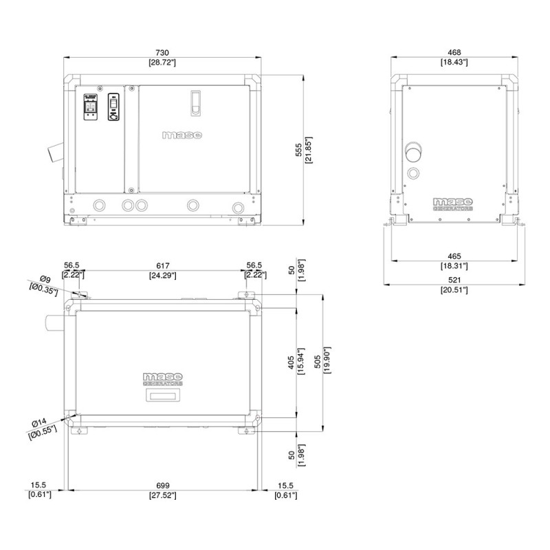 Generatore marino MASE IS9,6 monofase con motore KUBOTA Z722 con alimentazione diesel a 3600 giri/minuto capace di erogare una potenza di 9,6KW.