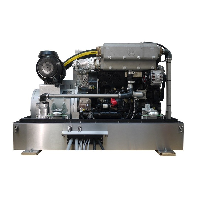 Generatore marino Fischer Panda 50-4PMS trifase da 47,1 KVA con motore a 1500 giri/minuto. Il generatore marino Fischer Panda 50-4PMS trifase è progettato con una cabina insonorizzante che lo rende supersilenziato. Il generatore marino Fischer Panda 50-4PMS trifase è costruito con motore JCB alimentato a diesel. L'alternatore del generatore marino Fischer Panda 50-4PMS trifase è a 4 poli con classe d'isolamento H. Grazie alla sua compattezza, le sue dimensioni e il suo peso ridotto, il generatore marino Fischer Panda 50-4PMS trifase è perfetto anche per essere installato anche su barche con spazi angusti.