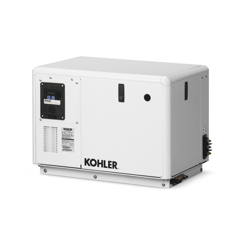 Generatore marino KOHLER 9EKOZD monofase da 8,5 KVA con motore a 1500 giri/minuto. Il generatore marino KOHLER 9EKOZD monofase è costruito con una cofanatura insonorizzante che lo rende supersilenziato. Il generatore marino KOHLER 9EKOZD monofase è costruito con motore Kohler alimentato a diesel a 3 cilindri, 4 cicli, sistema di raffreddamento chiuso con scambiatore di calore. L'alternatore del generatore marino KOHLER 9EKOZD monofase è senza spazzole con regolatore di tensione AVR e con raffreddamento ad acqua. Il regolatore di tensione AVR protegge i tuoi dispositivi sensibili collegati da sbalzi di tensione. Con le sue dimensioni ridotte il generatore nautico 9EKOZD è adatto anche su imbarcazioni di varie dimensioni.