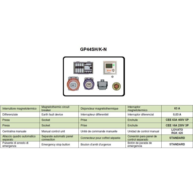 Potenza uso continuo Trifase: 42 KVA