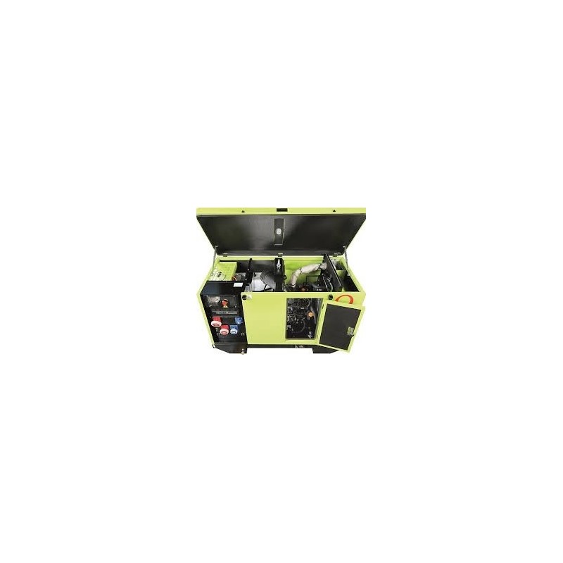 Gruppo elettrogeno PRAMAC P18000 monofase/trifase da 14,3 KW con motore alimentato a diesel a 3000 giri/minuto. Il gruppo elettrogeno PRAMAC P18000 è dotato di avviamento elettrico. L'alternatore del gruppo elettrogeno PRAMAC P18000 è con spazzole con regolatore di tensione AVR. Il motore a diesel Yanmar rende il gruppo elettrogeno P18000 molto affidabile in quanto è stato costruito e progettato utilizzando materiali di ottima qualità e con l'accesso a tutti i componenti aprendo il tetto (apertura e chiusura con chiave di sicurezza).