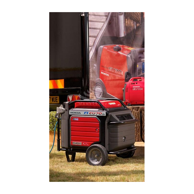 HONDA EU70is gruppo elettrogeno fa parte della gamma portatili della Honda ed è un generatore da 7 KW monofase, supersilenziato e con regolatore di tensione a tecnologia inverter.